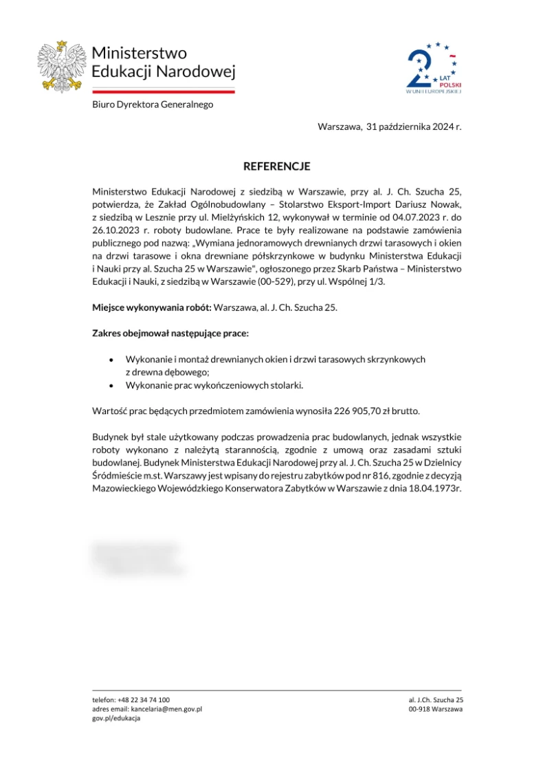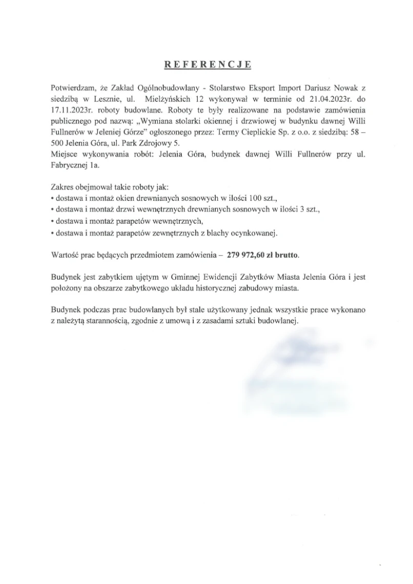 Poniżej prezentujemy Państwu zdanie inwestorów na temat realizowanych przez nas projektów. Poniższa lista to wynik wieloletnich starań o renomowaną markę naszych drzwi i okien.